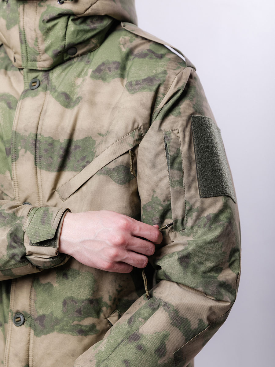 Зимняя тактическая куртка Рекрут пошита из специального дышащего материала с ветро и водонепроницаемой мембраной.