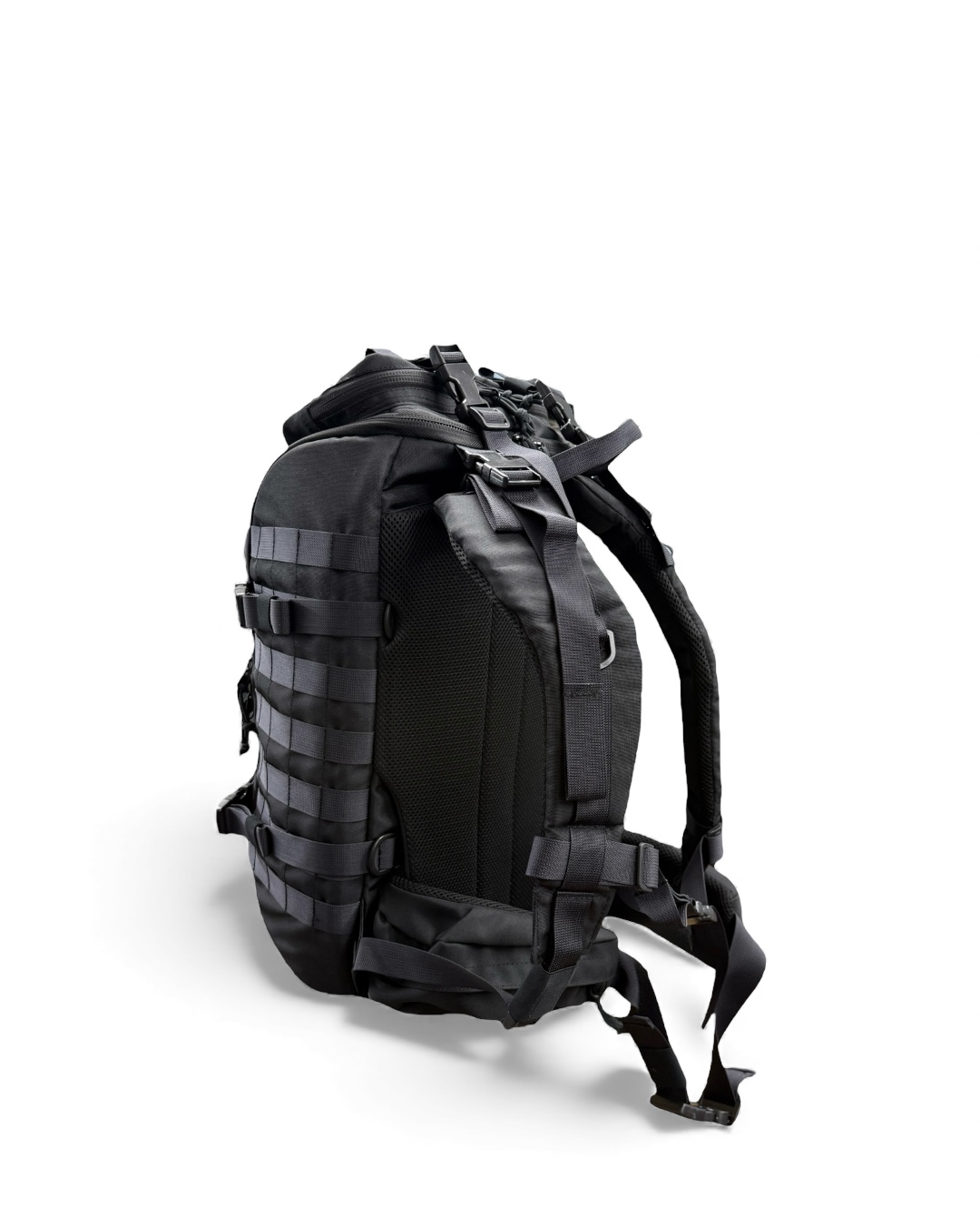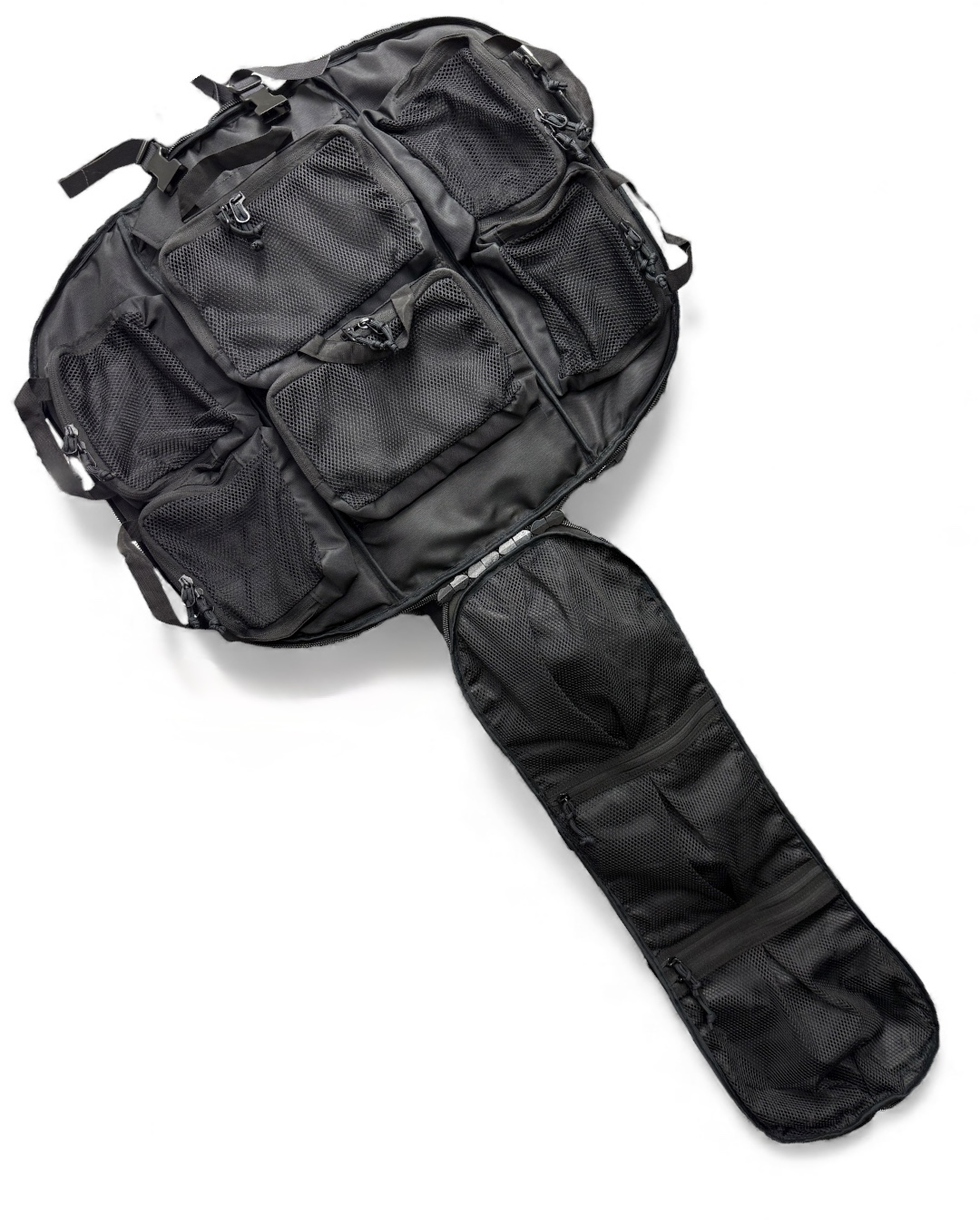 На внешней части рюкзака расположен карман с одним отделением, закрывающийся на молнию. Внешняя часть оборудована стропами MOLLE. Внутренняя сторона клапана имеет три объемных кармана из усиленной сетки, закрывающихся на молнию.